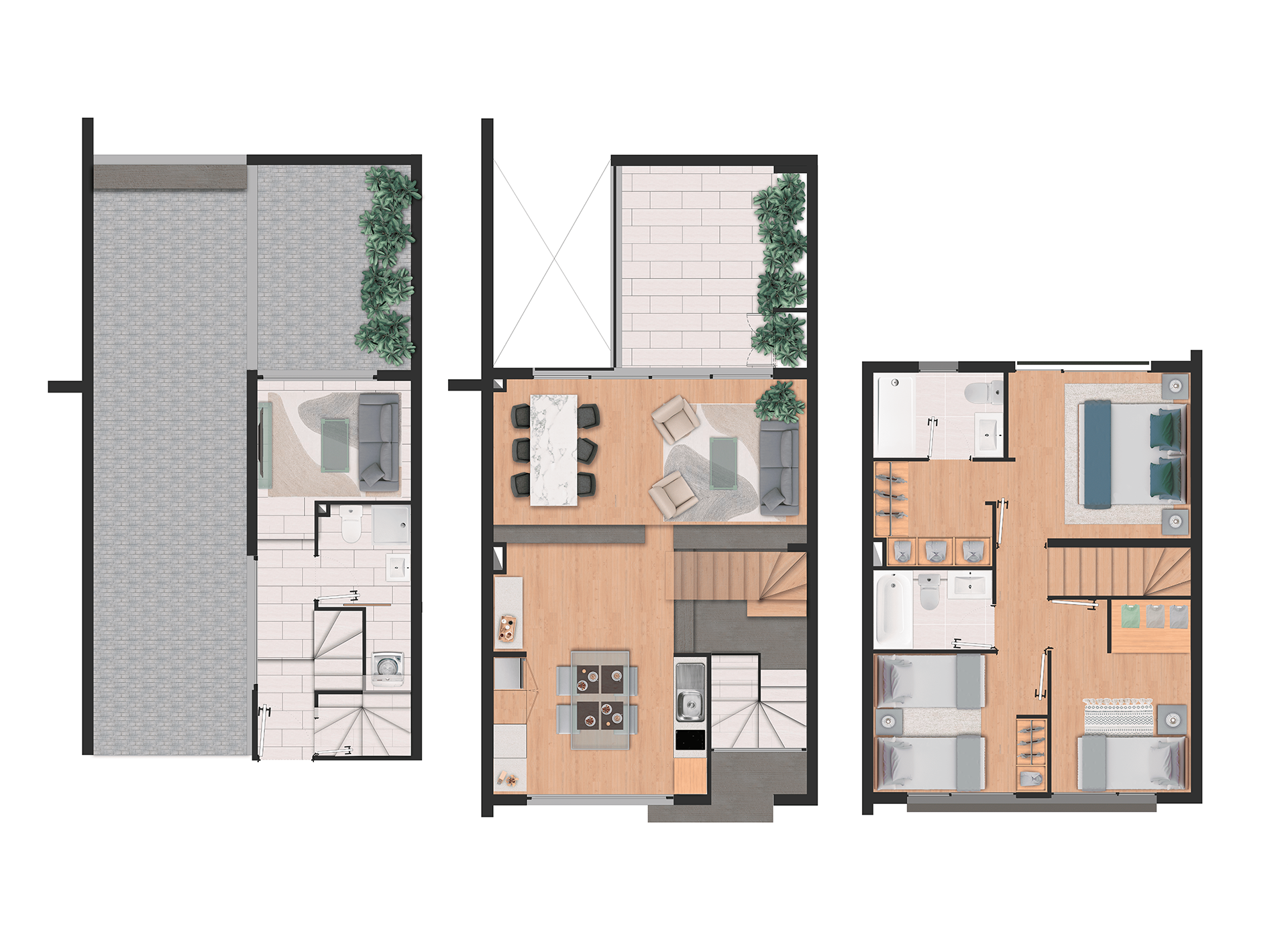 3 Dormitorios, 3 Baños + Patio + Terraza + Sala de estar