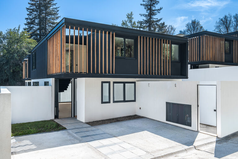 Este entorno y atributos del terreno llevaron a pensar las casas como “refugios”, en donde cada familia viviera esta paz que regala el lugar. La Arquitectura propuesta potencia la independencia entre viviendas a través de cerramientos exteriores en madera, dando un carácter ordenado y unitario al condominio a través de este material noble y natural.